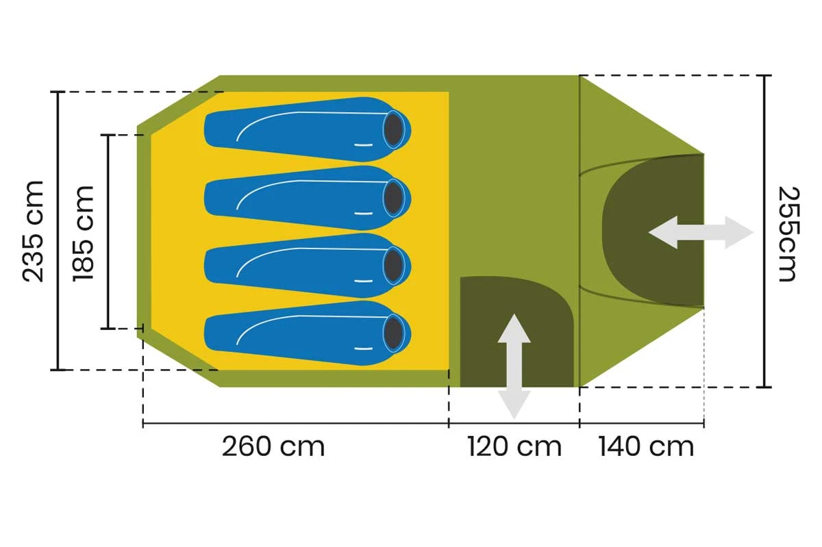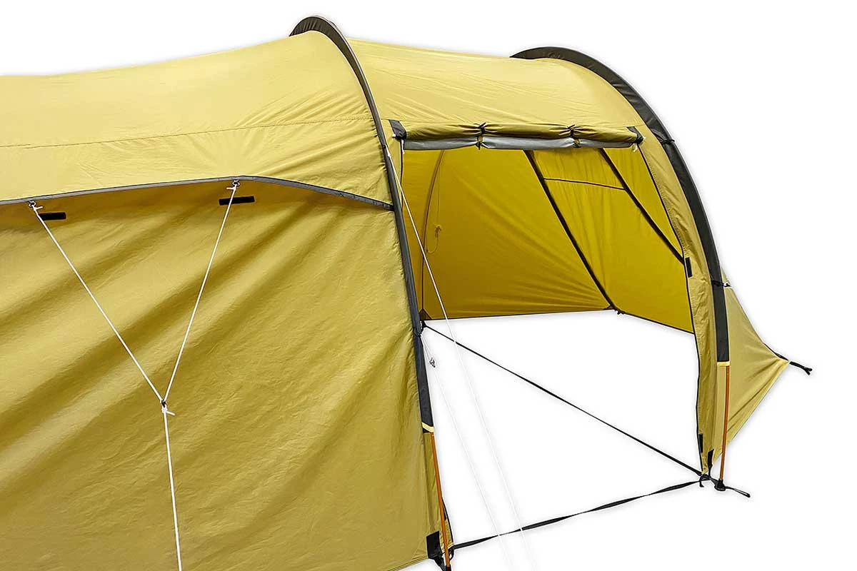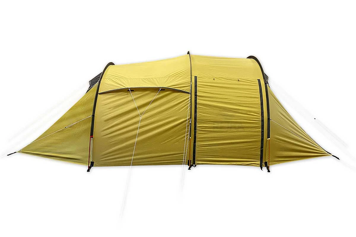 - robustes, geräumiges, stehhohes Tunnelzelt für 3 – 4 Personen