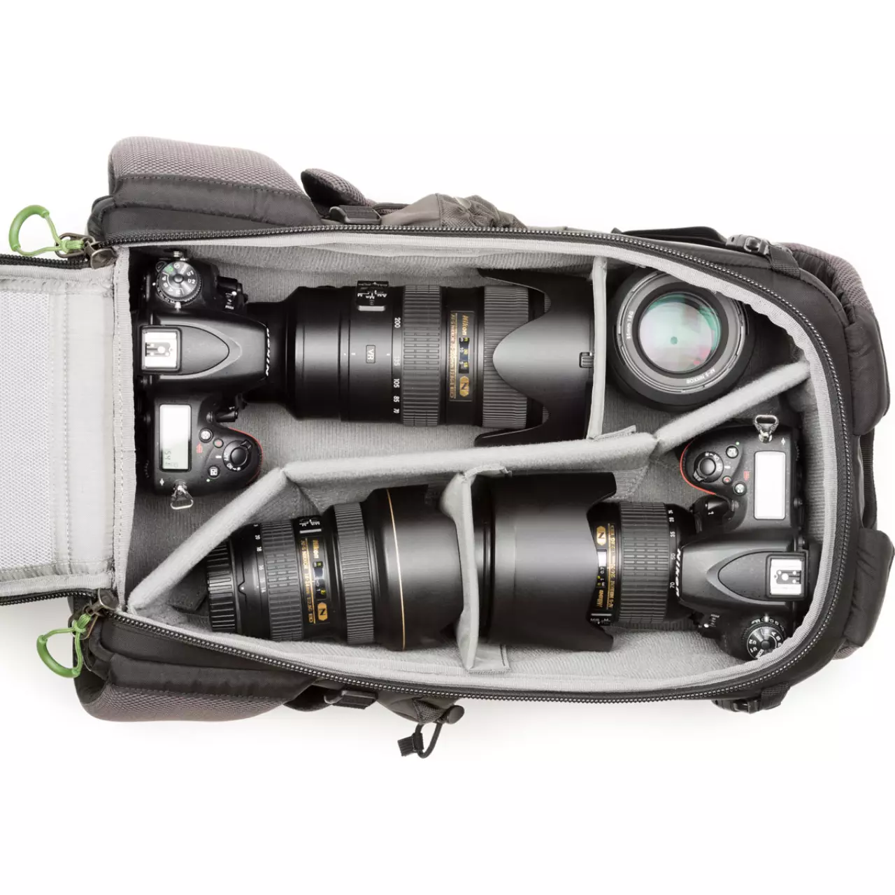 - Trennwände aus geschlossenporigem Schaum ermöglichen variable Einteilungen für Foto- und/oder persönliche Ausrüstung.