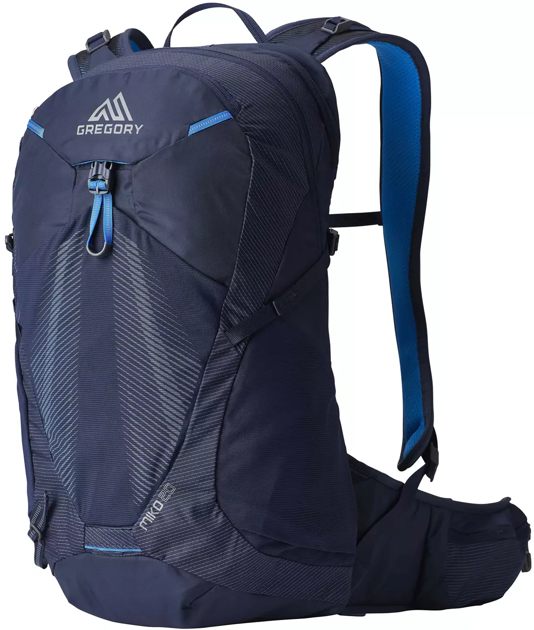 Gregory hat den Tagesrucksack Miko 20 plus für alle Menschen konzipiert, denen Schulter- und Hüftgurte herkömmlicher Rucksäcke immer zu kurz sind. In Kombination mit der verstellbaren Rückenlänge, können jetzt all großen Menschen endlich einen, vom Volumen kleinen Rucksack haben, der nicht überall ein Stück zu kurz, zu eng, zu klein ist, sondern einfach mal richtig passt! Leichte und flexible Materialien sowie weiche Schäume an Gurten und im Rückenpolster garantieren einen angenehmen Tragekomfort bei einer maximalen Zuladung von 9 kg. Mit 20 Liter Volumen fasst der Miko jede Menge Kram, der in vielen verschiedenen Taschen separiert werden kann. Eine große Rundbogenöffnung gewährt freien Zugang in das geräumige Hauptfach, welches zusätzlich eine kleine Netztasche beherbergt. Dazu kommen ein separates Fach fürs Trinksystem, eine kleine Reißverschlusstasche auf der Front und zwei weitere direkt auf dem Hüftgurt. An den Seiten gibt es zwei elastische Einschubfächer und auf der Front noch eine größere elastische Tasche. Reflektierende Gurtbänder und eine Ansteckmöglichkeit für ein Rücklicht runden den Miko 20 plus perfekt ab.