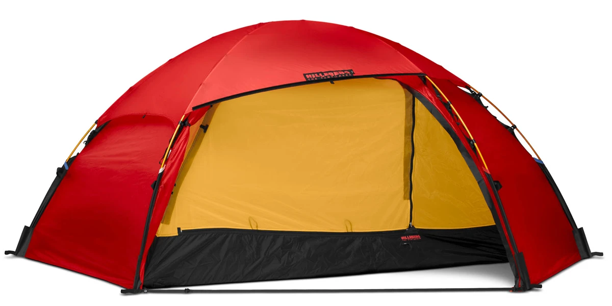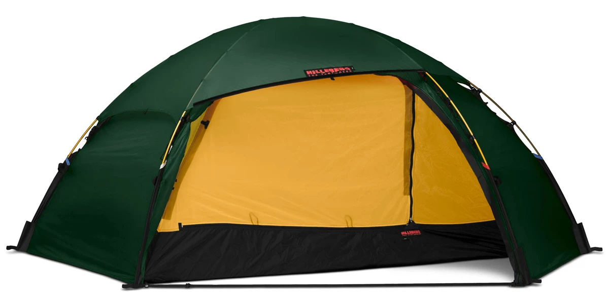 Das Hilleberg Allak 3 ist ein Kuppelzelt für 2 bis 3 Personen, dass eine freistehende Konstruktion mit hoher Stabilität und einem dafür niedrigen Gewicht vereint. Das hervorragend verarbeitete 4-Jahreszeiten-Zelt ist mit seinen 3.700 g Gesamtgewicht kein Ultra-Leichtgewicht, besticht aber dafür mit hoher Windstabilität, die im Wesentlichen erreicht wird durch die drei identisch langen Gestängebögen, die sich im Giebel in drei Punkten kreuzen und so gegenseitig stützen. Selbst die beiden parallel zum Innenzelt angeordneten Vorräume müssen nicht extra abgespannt werden, da sie durch das Gestänge bis auf den Boden ausgespannt werden. Damit ist das Hilleberg Allak 3 ein Zelt, das auch bei schwierigen Bodenverhältnissen schnell und stabil errichtet werden kann. Das Raumangebot ist durch die steilen Wände, die große Liegelänge und Giebelhöhe für zwei Reisende großzügig bemessen und für 3 ausreichend abe rnicht allzu komfortabel. Gerade für Wintertouren zu zweit ist das Allak 3 durch seine Innenzeltbreite von 160 cm die ideale Wahl um die voluminösere Ausrüstung unterzubringen. Durch das in das Außenzelt eingehängte Innenzelt und die Verbindung von kurzen Gestängekanälen mit Clips kann das Hilleberg Allak 3 in kürzester Zeit und auch unter widrigen Wetterbedingungen errichtet werden.