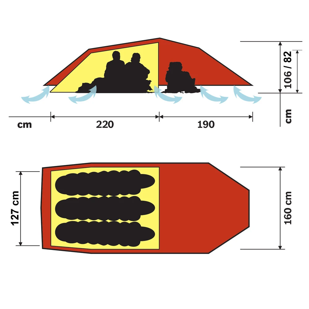 - Innen- und Außenzelt gekoppelt für raschen, regensicheren Aufbau