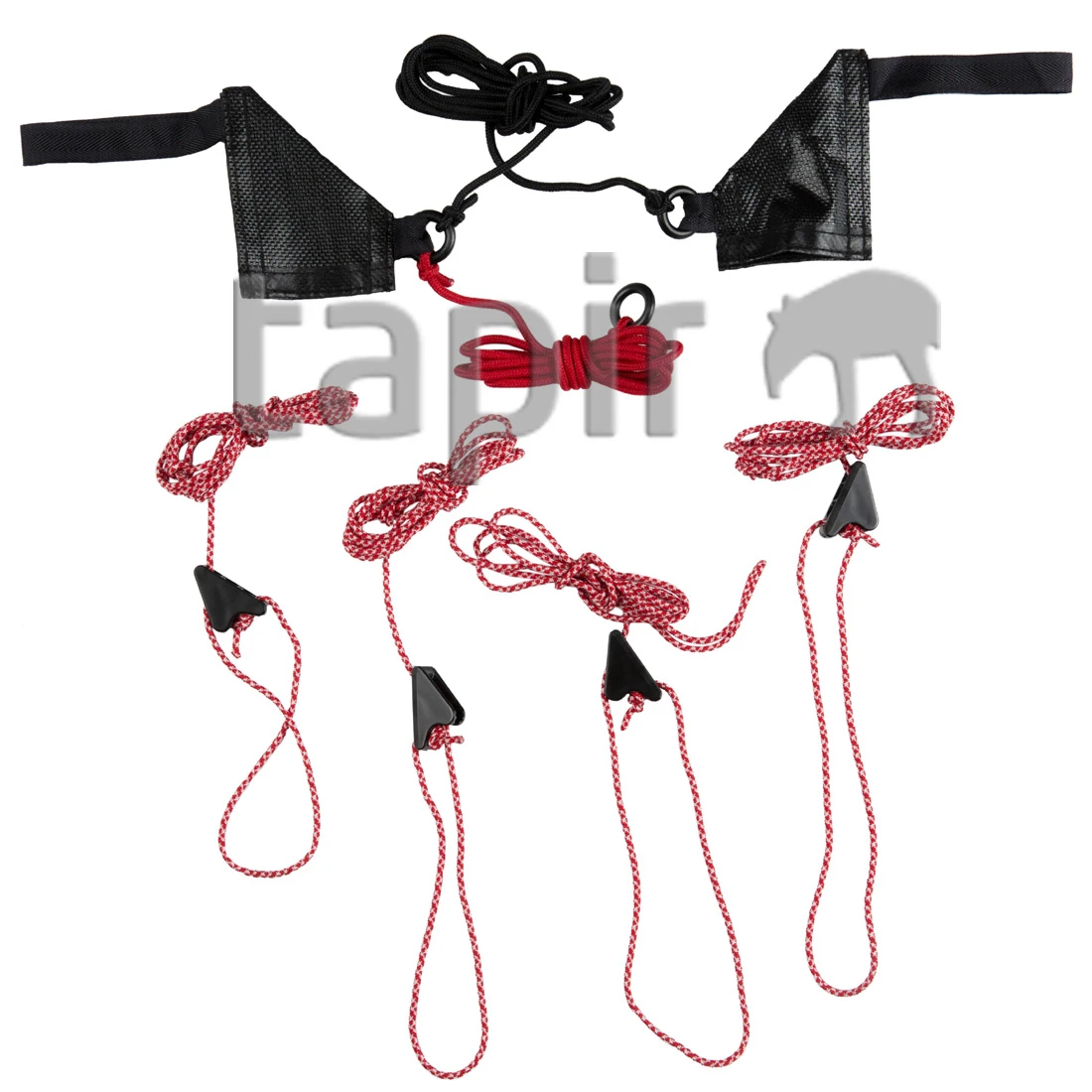 Das Hilleberg Stangenhalter-Set Akto wird benötigt, wenn das Innenzelt des Hilleberg Akto separat aufgestellt werden soll. Das ist sinnvoll in heißen Gegenden ohne Niederschlag, da Klima und Belüftung in der Hitze deutlich verbessert werden. Das Set enthält zwei Stangenhalter mit Verbindungsleine und Fixierleine für den Gestängebogen sowie 4 Abspannleinen. Die Stangenhalter werden mit dem bewährten Knebelknopf-Ösen-System einfach am Innenzelt angeknöpft und die rote Leine wird zu Stabilisierung um das Gestänge gewickelt.