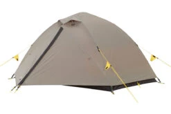 Das NEMO Hornet OSMO™ 2P ist ein Ultraleichtzelt für 1-2 Personen mit einem nahezu freistehenden Innenzelt, zwei gegenüberliegenden Eingängen und zwei Vorräumen. Das neu entwickelte und ressourcenschonende OSMO™ Material aus dem Außenzelt und Bodenwanne bestehen, besteht aus einem Nylon-Polyester Mischgewebe, das zu 100 % aus recyceltem Garn besteht. Es dehnt sich bei Nässe deutlich weniger aus, hat eine höhere Reißfestigkeit und ist komplett frei von umweltschädlichen PFCs und chemischen Zusätzen zur Flammenhemmung. Der Flügel-ähnliche Flybar™, der auf das DAC Featherlite NFL Gestänge aufgeclipt wird, sorgt für angenehme Kopffreiheit im Innenzelt des NEMO Hornet OSMO™ 2P, das ausreichend Platz für zwei 51 cm breite Isomatten bietet. Das Raumangebot reicht damit für drei Bewohner, die bereit sind, zugunsten des geringstmöglichen Gewichtes Komforteinbußen in Kauf zu nehmen. Als Zelt für nur eine Person ist das Hornet OSMO™ 2P seinen 1.140 Gramm immer noch ein sehr leichtes Zelt und zugleich so geräumig, dass die komplette Ausrüstung mit ins Innenzelt kann. Und die Option, das ultraleichte Kuppelzelt auch mal mit einem Übernachtungsgast zu nutzen, bleibt ja bei der Verwendung als 1-Personen-Zelt bestehen… Der Boden aus NEMOs OSMO™-Material sichert dem ultraleichten Trekkingzelt zuverlässige Wasserdichtigkeit von unten und große Moskitonetzflächen sorgen für die erforderliche Ventilation, damit Kondensfeuchtigkeit nicht zum Problem wird. Kurze Aufstellstäbe, die in den Ecken am Fußende des Innenzeltes eingenäht sind, schaffen dort die für den Schlafsack notwendige Höhe. Das Außenzelt aus OSMO™ sorgt für ein langanhaltendes Abperlverhalten von Wasser, eine hohe UV-Beständigkeit und eine verbesserte Reißfestigkeit. Da die Innenseite des Außenzeltes außerdem beschichtet ist und versiegelte Nähte hat, ist das NEMO Hornet OSMO™ 2P ein dauerhaft und zuverlässig wasserdichtes Tourenzelt. Mit zwei Heringen wird das Außenzelt so ausgespannt, dass an den Längsseiten des Innenzeltes zwei Vorräume entstehen, die Platz für Ausrüstung bieten. Dabei hat jeder Bewohner des NEMO Hornet OSMO™ 2P seinen Eingang und seinen eigenen Lagerbereich. Neben der Tür ist es möglich, Außen- und Innenzelt miteinander zu verbinden. Dabei wird die Innenzeltwand nach außen gezogen und so mehr Bewegungsraum im Innenzelt geschaffen. Das Ultraleichtzelt Hornet OSMO™ 2P ist sehr schnell aufgebaut: Das Innenzelt wird mittels Clips am Y-förmigen Gestänge befestigt und bekommt im Fußbereich Volumen, indem dort die V-Abspannungen mit zwei Heringen gesetzt werden. Dann kann das Außenzelt an den Gestängefüßen bzw. den bereits gesteckten Heringen befestigt werden. Zum Schluss erhält das 3-Jahreszeiten-Zelt seine endgültige Form, indem die beiden Vorräume mit je einem Hering ausgespannt werden. Bei tapir gibt es zum NEMO Hornet OSMO™ 2P die passende Zeltunterlage zum Schutz des Innenzeltbodens dazu. Diese wird an der Kopfseite des Zeltes mittels zweier geschlitzter Schnallen stabil am Gurtband des Innenzeltes befestigt und am Fußende mit den vorhandenen Heringen gespannt. Eine besonders gelungenes Detail ist der rechteckige Divvy™-Packsack des NEMO Hornet OSMO™ 3P. Hier haben die Entwickler aus New Hampshire auf genial simple Weise eine Touren-Selbstverständlichkeit gleich in der Konstruktion berücksichtigt: Der Packsack hat in der Mitte einfach eine zweite Zugkordel, sodass er sich auch mit halbem Volumen verschließen läßt. Das ist der unauffällige Wink an den Nutzer, doch das Gestänge separat zu transportieren und die Haut des Hornet OSMO™ 2P so klein wie nur möglich zusammenzupressen. Dann ist 2-Personen-Tourenzelt nicht nur ultraleicht, sondern auch ultraklein im Packmaß. Einen Testbericht zum Thema Wassersäule und zur Wasserdichtigkeit des Bodens gibt es im tapir-Blog.