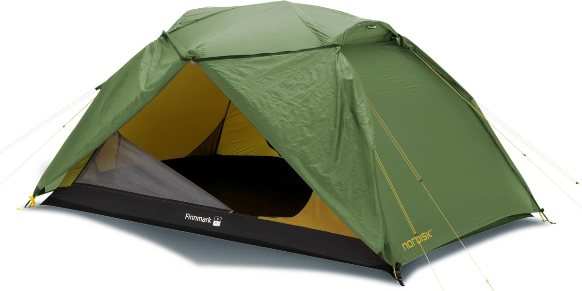 Werthaltig. Nordisk gibt dem 2-Personen-Kuppelzelt Finnmark 2 PU neben langlebigen, robusten Beschichtungen und einem großzügig dimensionierten Aluminium-Gestänge auch zwei komplett gedoppelte Innenzelt-Türen mit, die eine insektenfreie, stufenlose Regulierung der Luftzirkulation im Innenzelt ermöglichen. Mit diesen selten gewordenen Details entspricht Nordisk den Wünschen von komfort- und sicherheitsbewußten Zelt-Einsteigern ebenso wie denen von langjährigen erfahrenen Zeltnutzern, die ähnliche Features an ihren alten Zelten gewöhnt waren und gern bei ihrem neuen Zelt wieder hätten. Auch mit der über Jahre gebräuchlichen Innenzeltbreite von 150 cm erweist sich das Finnmark 2 PU als Bewahrer alter Werte – hier ist es nicht so knackig eng wie in den meisten Leicht- und Ultraleichtgewichts-Zelten, die oft bis zu 30 cm weniger Breite im Innenzelt aufweisen. Das Nordisk Finnmark 2 PU ist also perfekt für Menschen, die das Gewicht von 3.600 g als Indiz für ein langlebiges, sicheres und komfortables Zelt werten und schätzen – weil sie (vielleicht aus Erfahrung) wissen, dass selbst lange Trekking- oder Radtouren mit einem Zelt dieser Gewichtsklasse kein Problem sind.