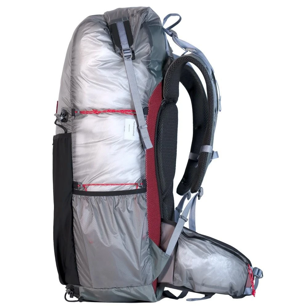 Superleicht! Und alles dran, was ein tourentauglicher Wanderrucksack braucht. Hinter dem XC3 von Pajak versteckt sich ein 600 Gramm leichter Rucksack, der 45 Liter Packvolumen bietet. Das Gewichts-Geheimnis versteckt sich natürlich im Material, einem silikonisierten Polyamidgewebe, welches aus Abfallprodukten (u.a. der Skiherstellung) gewonnen wird. Das ist exterm dünn, trotzdem reißfest und durch die Silikonisierung auch wasserdicht. Allerdings sind die Nähte von innen nicht getapet, so dass der XC3 nicht als wasserdichter Rucksack gelten kann. Eine Deckelklappe gibt es nicht, da ein effektiver Rollverschluss die Packkammer des Rucksacks verschließt. Innen befindet sich eine kleine Reißverschlusstasche und eine Trinksystemvorbereitung. Außen am Rucksack sind weitere 5 Taschen angebracht, die ausreichend Stauraum für Telefon, Geldbörse, Kamera, Regensachen, etc. bieten. Stockhalterung und Kompressionsriemen ergänzen die Ausstattung und ermöglichen das Anbringen weiterer Ausrüstungsteile am Packsack des XC3. Mit dem weich gepolsterten Tragesystem kann der Leichtgewichtsrucksack bequem samt Inhalt getragen werden.